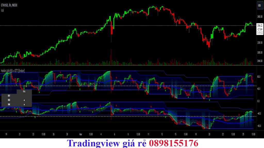Biểu đồ Heikin-Ashi giúp trader dễ dàng nhận diện xu hướng mạnh và giảm thiểu các tín hiệu giả. Điều này rất hữu ích cho những trader theo đuổi chiến lược giao dịch theo xu hướng. Biểu đồ trên TradingView kết hợp Heikin-Ashi với các chỉ báo khác để nâng cao hiệu quả phân tích.